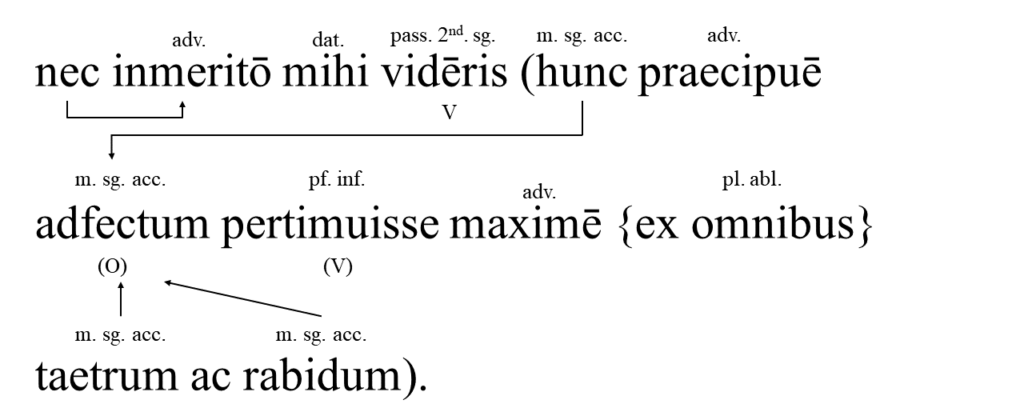 文末のtaetrum ac rabidumの解釈に少し悩みましたが、形からadfectumにかかる形容詞と判断しました。