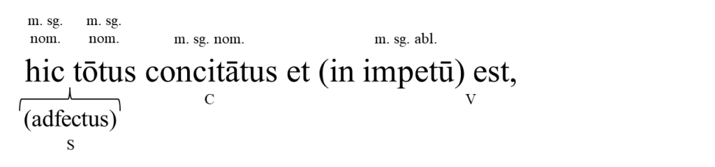 hic tōtus concitātus et in impetū est,